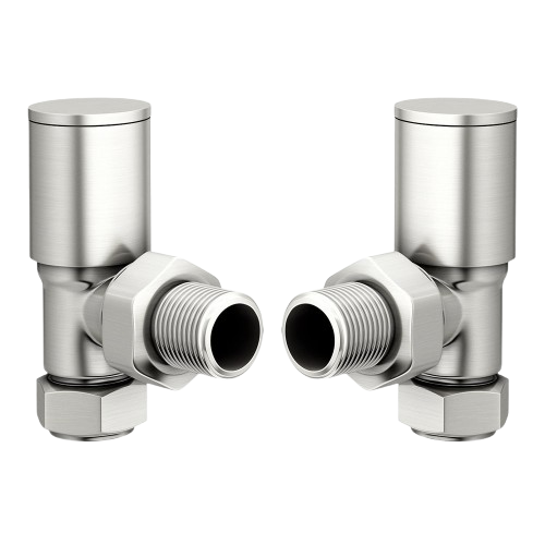 Round Angled Rad Valve pair, Brushed Nickel