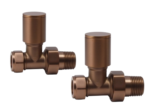 Round Straight Rad Valve pair, Brushed Bronze