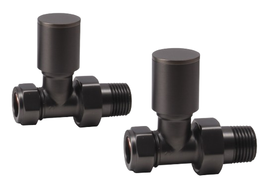 Round Straight Rad Valve pair, Brushed Gunmetal