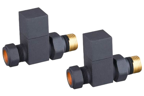 Square Straight Rad Valve pair, Anthracite